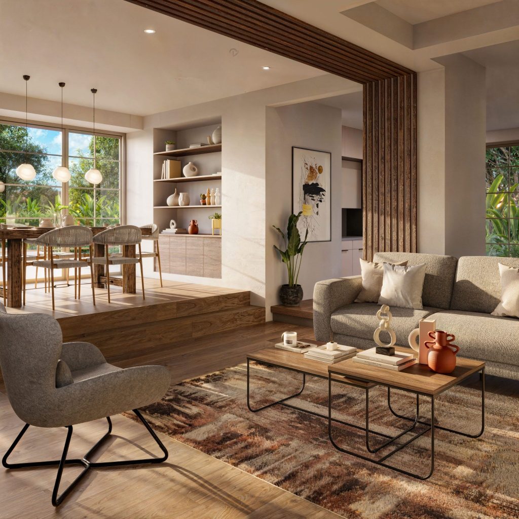 Los elementos cálidos y rudos, reconocidos como “crudos”, se expresan en maderas, cerámicas, lino, algodón y piedras naturales. Sus texturas e imperfecciones le dan autenticidad a tus entornos. En los muebles, las telas suaves al tacto te ofrecen una experiencia acogedora, mientras que los suelos en roble blanco añaden un aire elegante. Son acabados de alta calidad sin opulencia, que renuevan tu hogar.